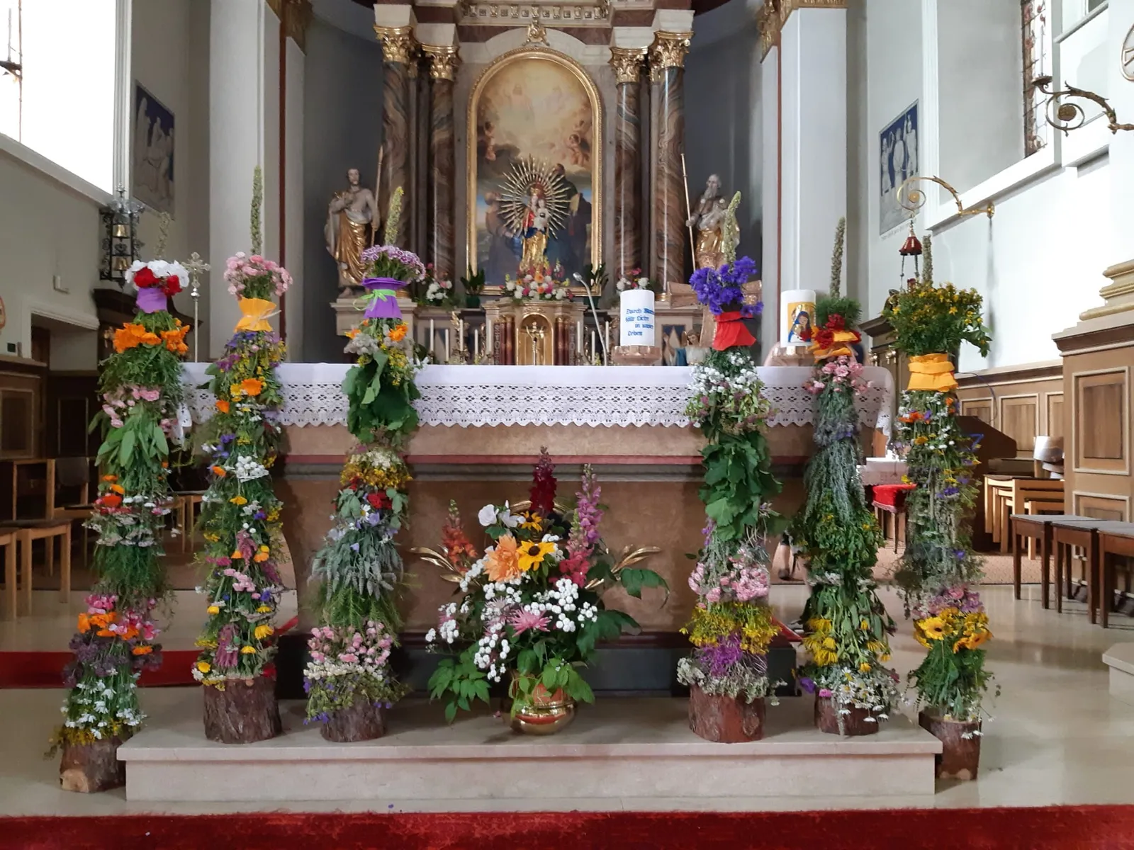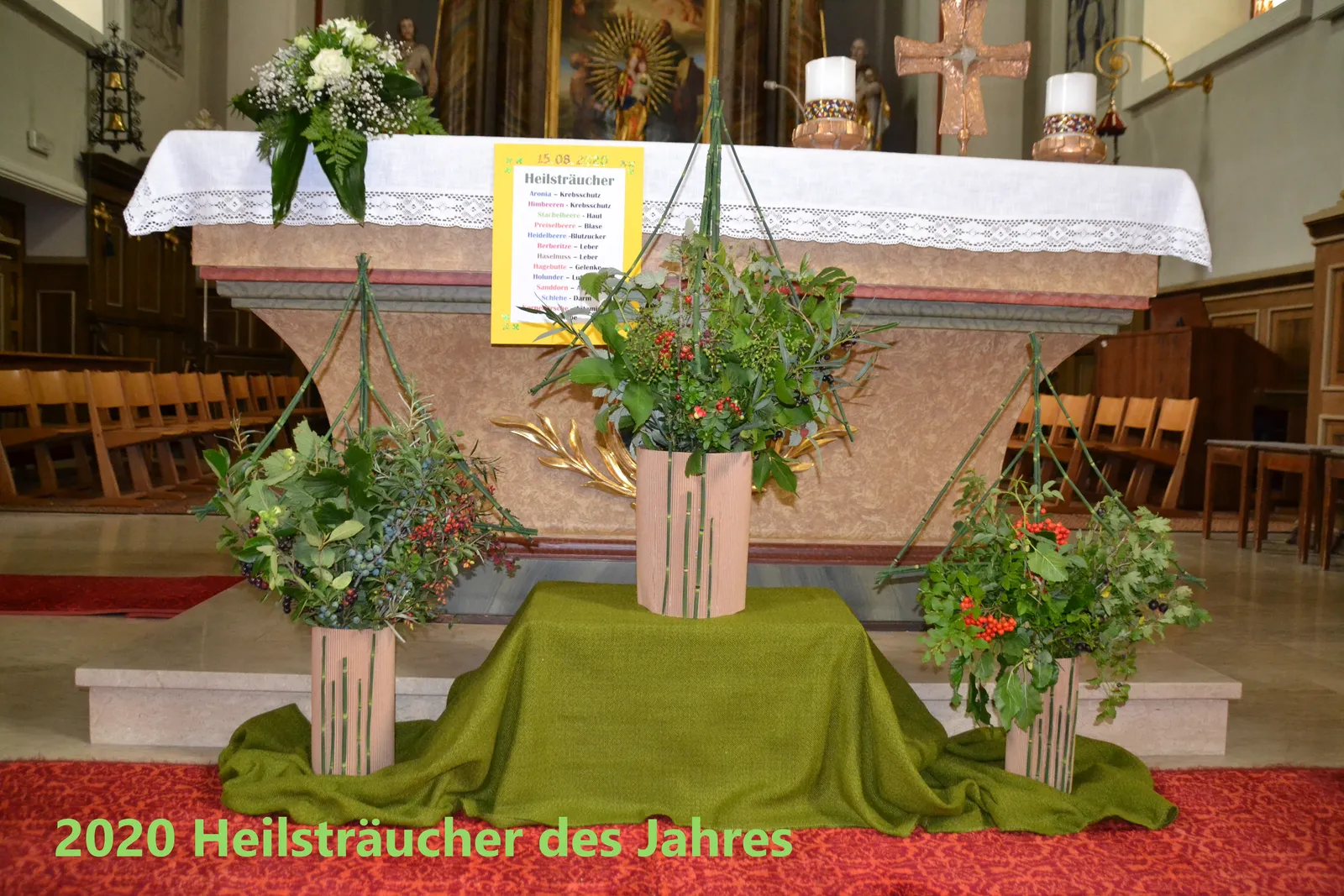 Jedes Jahr gestaltet der HPV den Erntedankaltar in der Sextner Pfarrkirche. Die Themen reichen von Heilkräutern über Marienkräuter bis hin zu Sonnenkräutern.